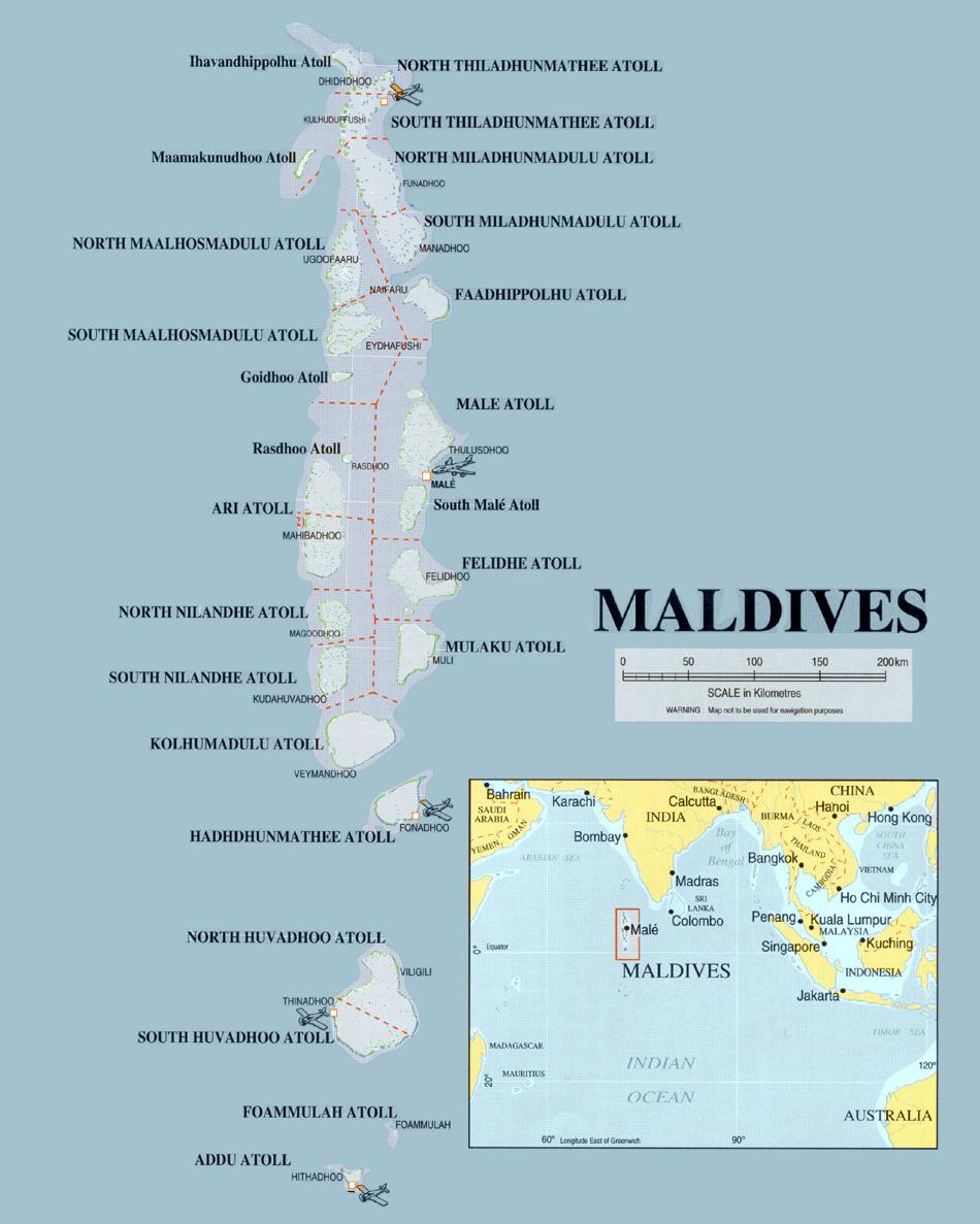 Maldives physical map